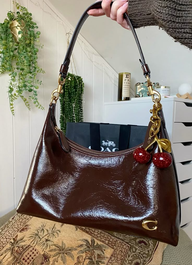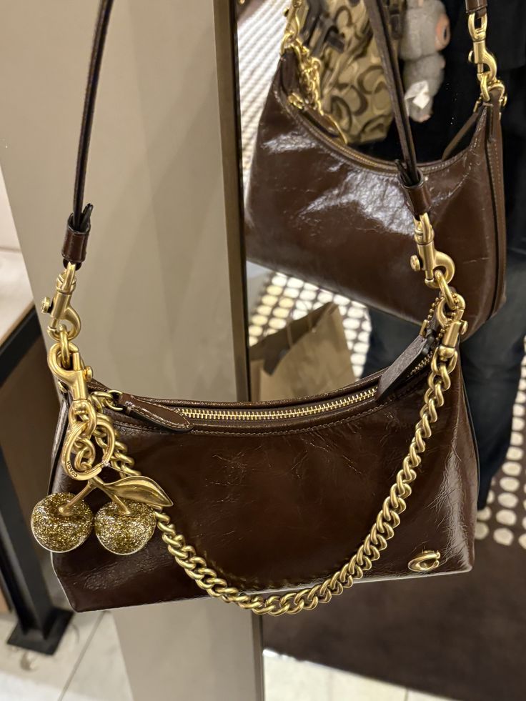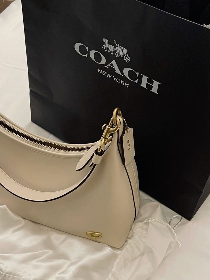 A Coach Juliet é uma bolsa sofisticada em couro macio, com design estruturado e franzidos modernos. Conta com logótipo dourado e alça ajustável para uso ao ombro ou a tiracolo. Elegante e prática para qualquer ocasião.