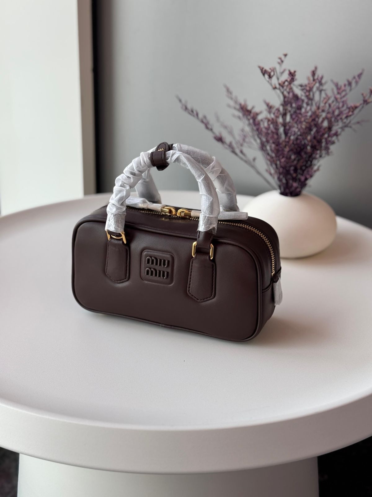 A Miu Miu Arcadie é uma mala moderna e versátil, ideal para o dia a dia com um toque de sofisticação. Confeccionada em nylon leve e resistente, apresenta acabamentos em pele que valorizam o seu design contemporâneo. Dispõe de fecho superior em fecho de correr e bolsos exteriores funcionais, garantindo praticidade e acesso rápido aos essenciais.