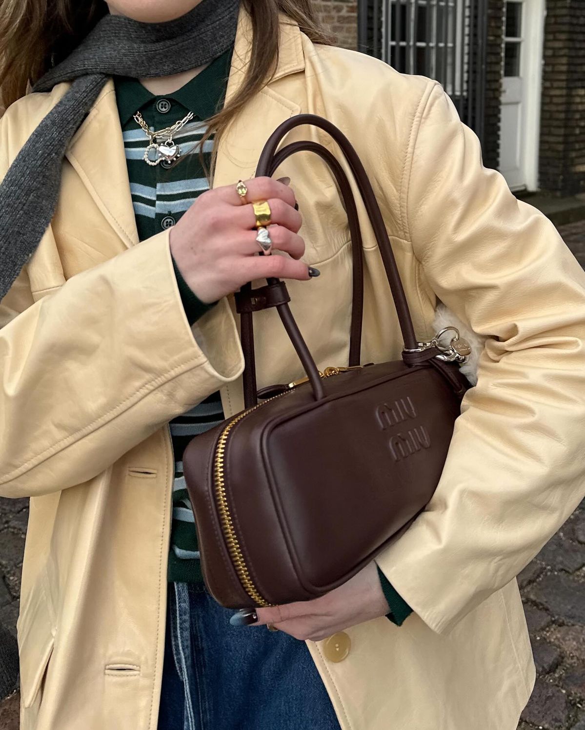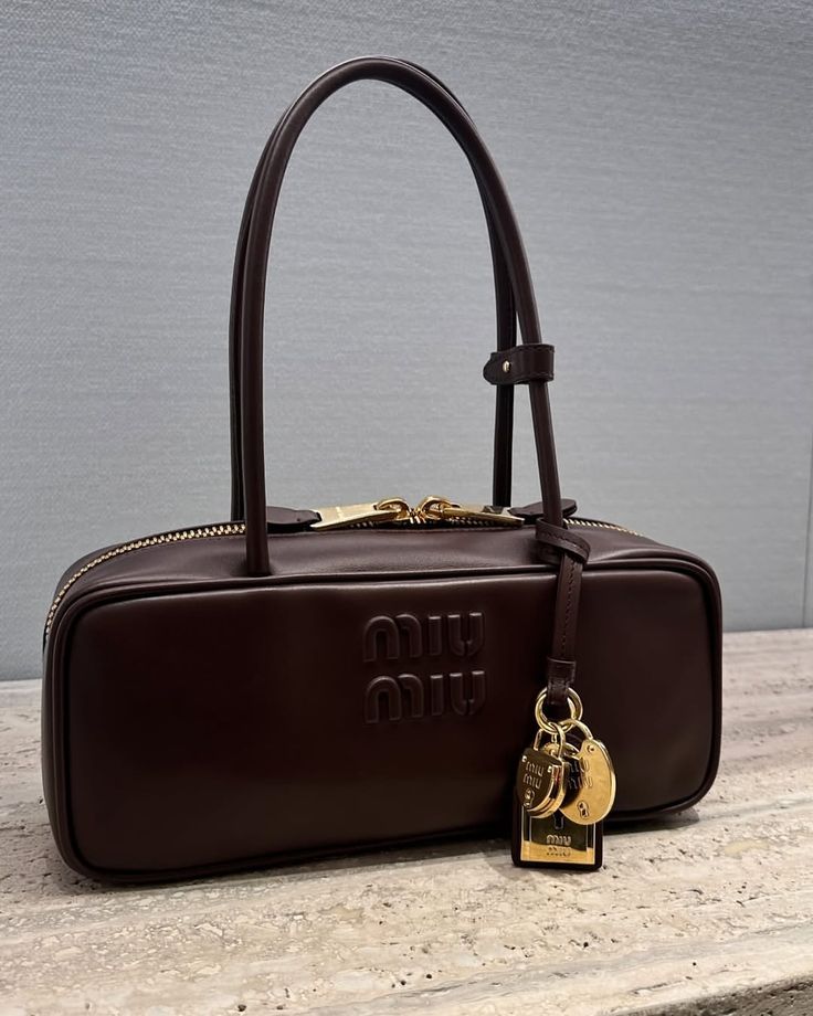 A Miu Miu Beau é uma mala moderna e versátil, ideal para o dia a dia com um toque de sofisticação. Confeccionada em nylon leve e resistente, apresenta acabamentos em pele que valorizam o seu design contemporâneo. Dispõe de fecho superior em fecho de correr e bolsos exteriores funcionais, garantindo praticidade e acesso rápido aos essenciais.